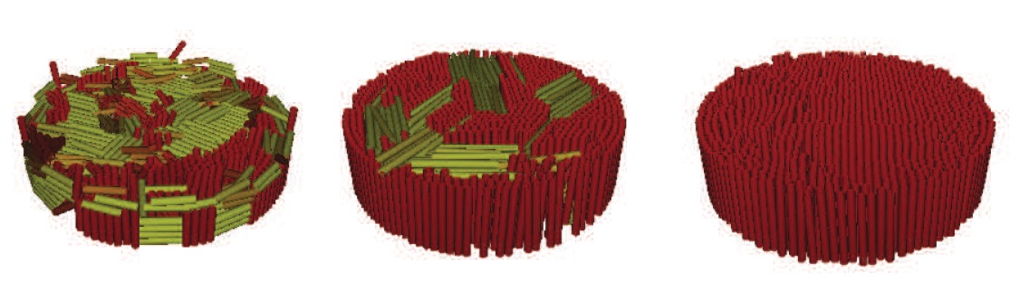 from 0.1 to 1.0 in steps of 0.1. The vibrating container was stopped quickly to create a “frozen” state of rods, which was then scanned using a X-ray Micro CT scanner. Using a home-grown Matlab routine we tracked position and orientation of each rod in the container. We observed that rods of